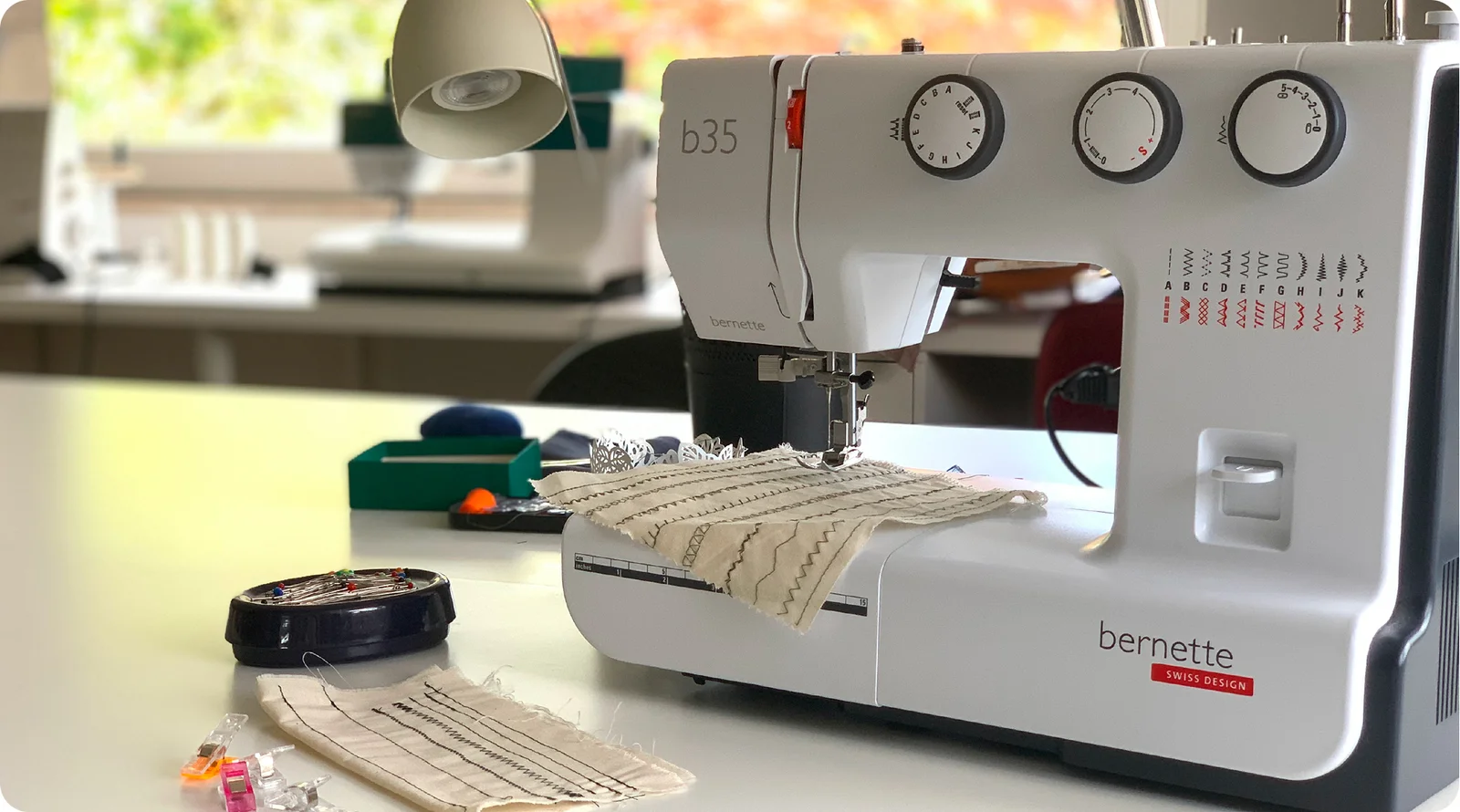 Ce sont des machines à coudre et surjeteuses la plupart du temps. Il y a aussi une recouvreuse et une brodeuse dans le cadre de certains projets.